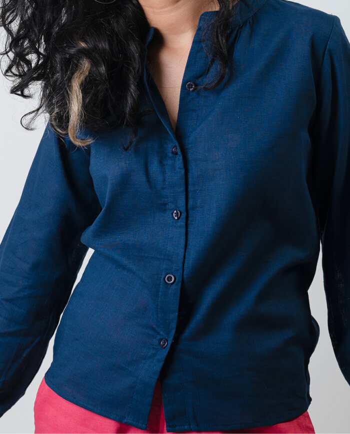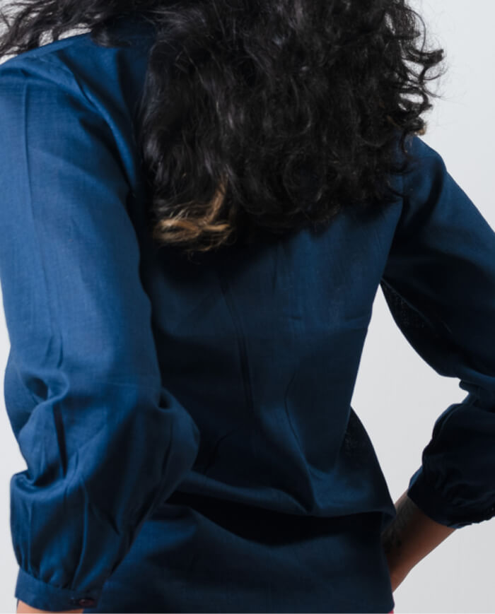 The Batiste Linen Balloon Sleeve Shirt – Navy Blue